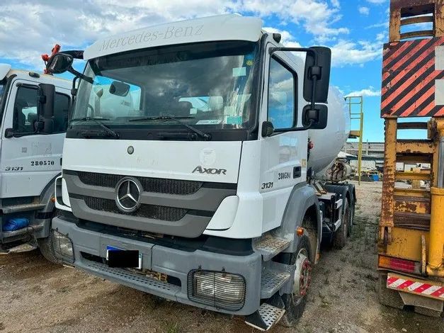 CAMINHÃO BETONEIRA M.BENZ AXOR 3131 6X4, ANO 2020/2020 CAMINHÃO BETONEIRA Marca: M.BENZ Modelo: AXOR 3131 6X4 Ano Fab/Modelo: 2020/2020 Quilometragem acima de:KM 59236 Cor: BRANCA Combustível: Diesel Eixos: Três Tração: 6x4 Cardan: Sim Diferencial: Sim Câmbio: Automatizado Motor: Funcionando Bancos: Couro